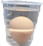 7.我再次放入6克盐,并搅拌均匀,发现鸡蛋微微浮起