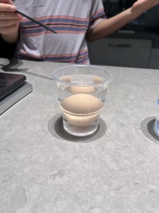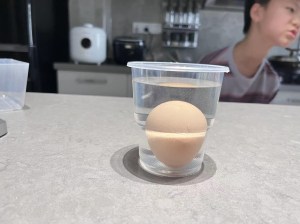 1.我还是放了6克糖,在清水中,并搅拌,观察后发现鸡蛋还是没有浮起来